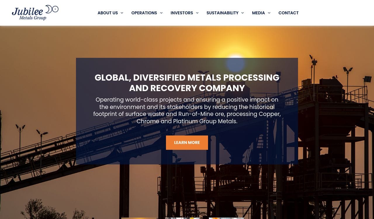 Jubilee Metals Group is a diversified metals processing business focused on maximising returns from under-utilised mineral assets and resources.