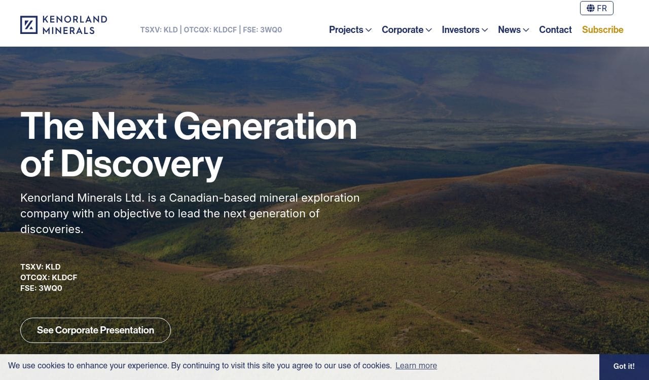 Kenorland Minerals has a portfolio of exploration projects in Canada, Finland, and the United States. The company's flagship project is the Tanacross copper-gold project in Alaska, which is a joint venture with Newmont Corporation. The company also has a joint venture with Sumitomo Metal Mining in Quebec, Canada, and a strategic alliance with BHP in Western Australia.