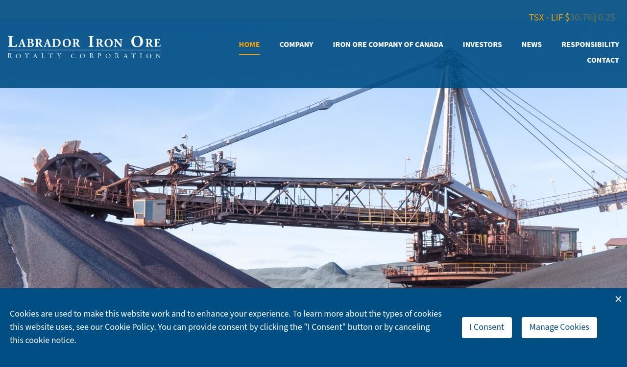 Labrador Iron Ore Royalty Corporation (LIORC) is a Canadian company that holds a 15.10% equity interest in Iron Ore Company of Canada (IOC), generating revenue from IOC's operations and receiving royalty payments and dividends from its investment in IOC.