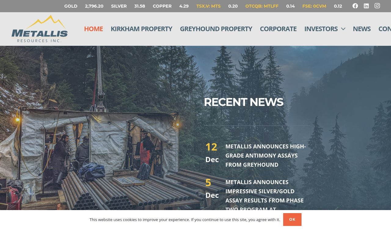 1. Strategic location: Metallis Resources Inc. is located in the prolific Golden Triangle region of British Columbia, Canada, which is known for its high-grade gold, silver, and copper deposits. The company's flagship project, the Kirkham Property, is situated in a highly prospective area with excellent infrastructure and access to major transportation routes.