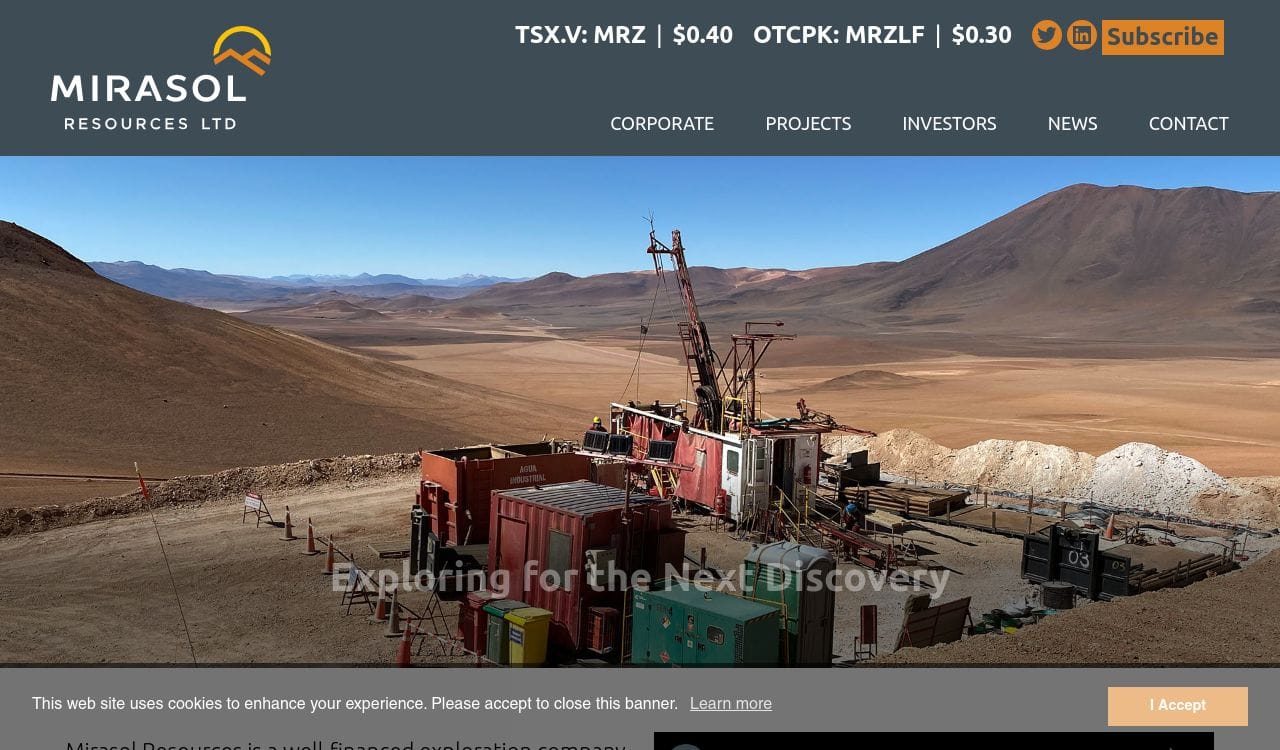 2. Strategic Partnerships - Mirasol Resources has established strategic partnerships with several major mining companies, including Newmont Mining and First Quantum Minerals. These partnerships provide the company with access to additional technical expertise, funding, and potential joint venture opportunities.