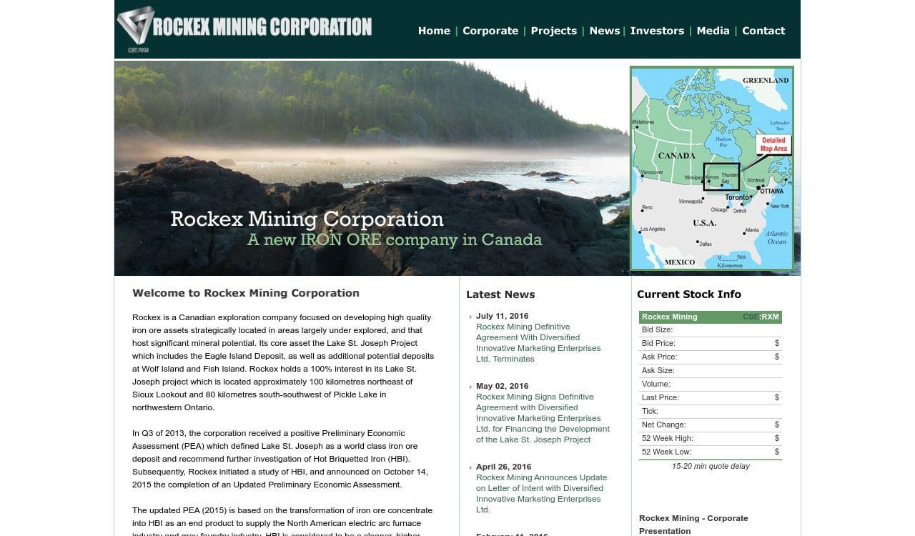 Rockex Mining Corporation is a Canadian-based mining company that focuses on the exploration and development of iron ore deposits in Northwestern Ontario. The company's flagship project is the Lake St. Joseph Iron Ore Project, which is located approximately 100 km northeast of Sioux Lookout, Ontario. The project has a measured and indicated resource of 1.2 billion tonnes of iron ore, making it one of the largest undeveloped iron ore deposits in North America. Rockex Mining Corporation is committed to responsible mining practices and sustainable development, and has a strong focus on environmental stewardship and community engagement.