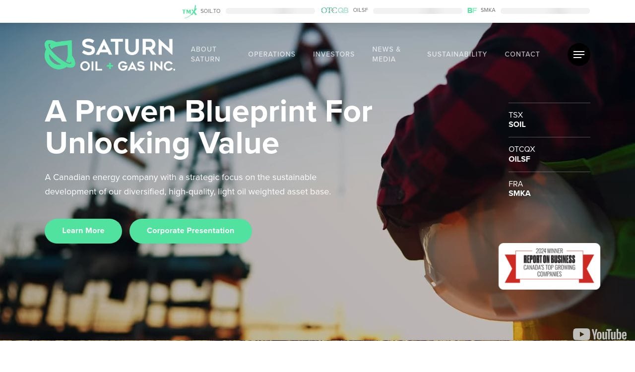 Saturn Oil & Gas Inc. is a Canadian energy company that focuses on the exploration and development of oil and natural gas resources in Saskatchewan. The company was founded in 2017 and has since acquired a significant land position in the province, with over 1.2 million acres of exploration and development opportunities. Saturn's strategy is to use advanced drilling and completion techniques to maximize the recovery of oil and gas from its properties, while also minimizing its environmental impact. The company is committed to sustainable development and has implemented various initiatives to reduce its carbon footprint and promote responsible resource development. Saturn is listed on the TSX Venture Exchange under the symbol SOIL.