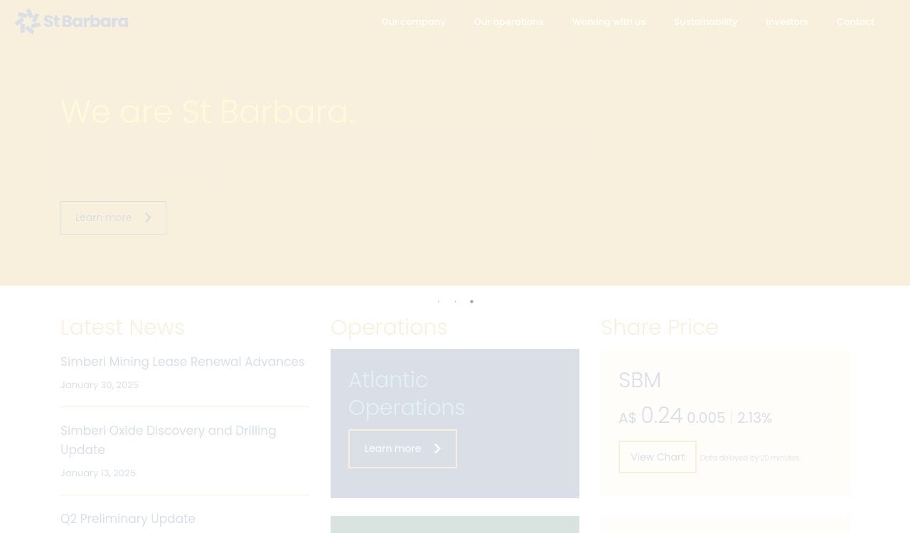 St Barbara is an Australian based gold producer and explorer. We have three wholly owned operations, Gwalia, Simberi and Atlantic Gold.