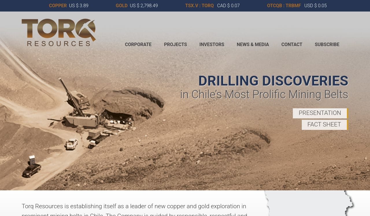 1. Limited exploration portfolio - Torq Resources Inc has a limited exploration portfolio compared to its peers, which may limit its growth potential in the long run.