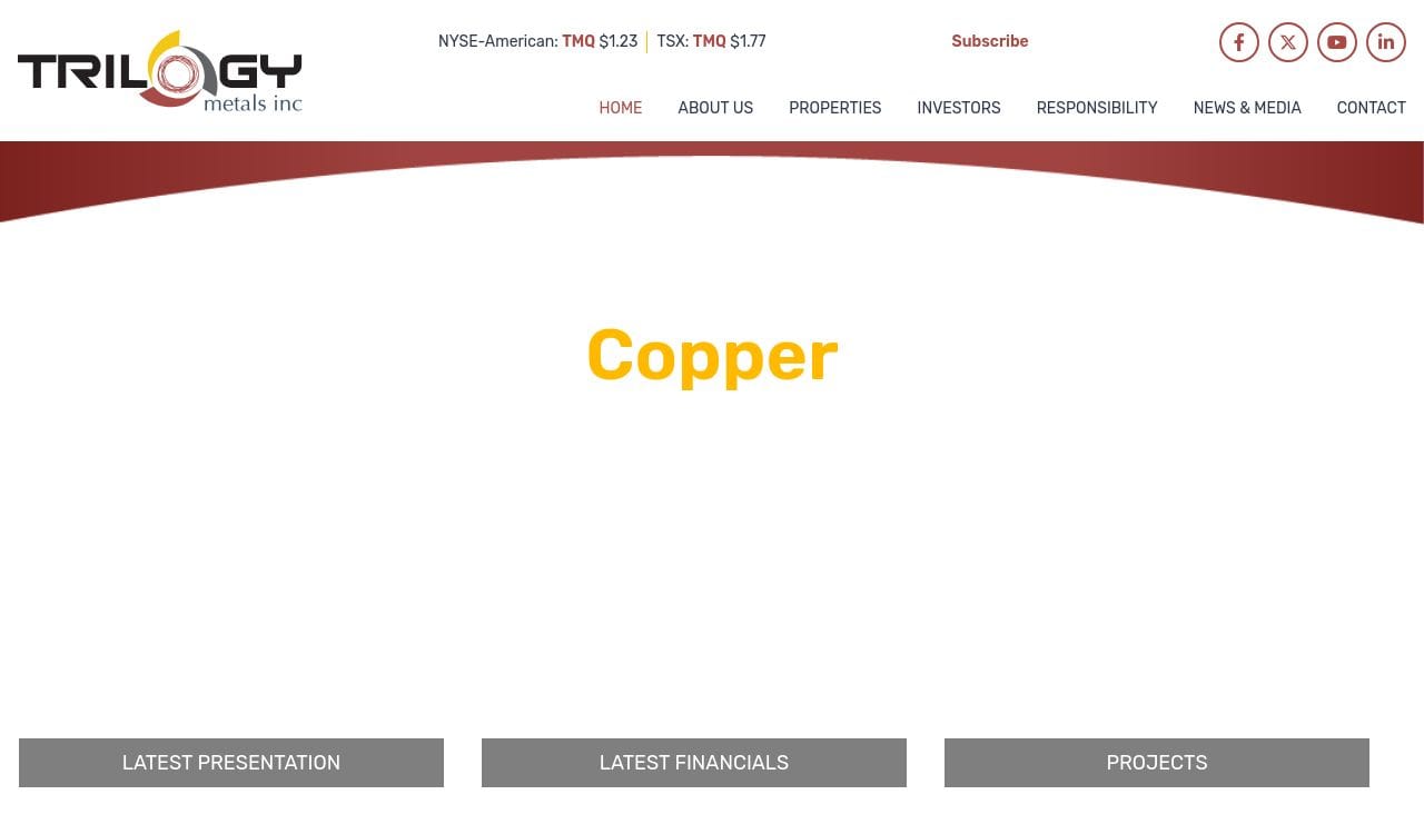 1. High-grade deposits - Trilogy Metals has some of the highest-grade copper-zinc deposits in the world, with an average grade of 5.2% copper and 6.4% zinc. This gives the company a significant advantage over its peers, as higher-grade deposits are typically more profitable to mine.