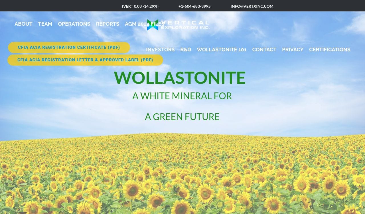 Vertical Exploration Inc. However, based on the available information, the competitive edge of the company could be its focus on exploring and developing mineral properties in Canada. The company's primary focus is on the St. Onge Wollastonite property in Quebec, which is one of the largest known wollastonite deposits in the world. Wollastonite is a versatile mineral used in various industrial applications, including ceramics, plastics, and construction materials.