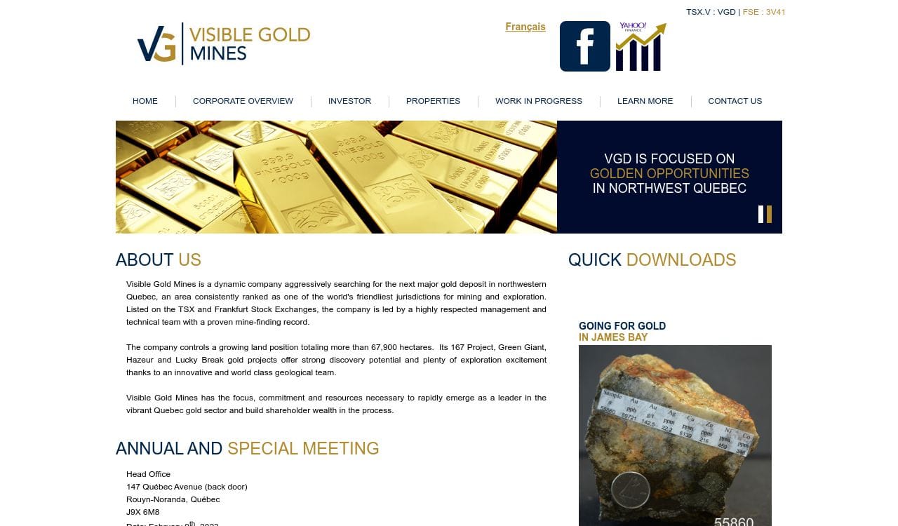 1. Strong exploration portfolio - Visible Gold Mines Inc. has a diversified portfolio of exploration projects in Canada, including the flagship Hazeur project in Quebec. The company's exploration team has a track record of discovering high-grade gold deposits, which could provide a competitive advantage in the industry.