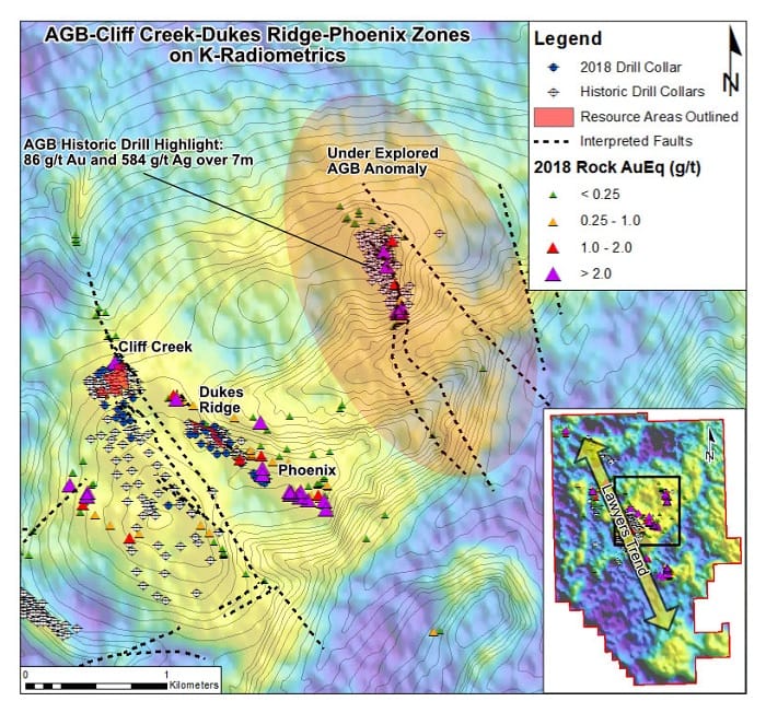 The old mine site deposit has a non 43-101 open pit resource of 1.92 million ounces identified within the Cliff Creek zone at 0.5 g/t cutoff. Mangement plans are to expand this resource towards 5 million oz. To do so, the company has a 50,000 meter drill program utilizing 5 drill rigs this summer. There will also be geological work and mapping. With this many rigs drilling there will be a steady stream of news which if positive will be good for share price. Investors love news, Especially good drill news.