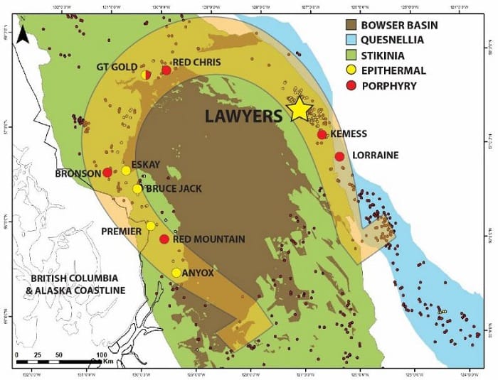 The project that Benchmark is working on is called the Lawyers Project. It would be concidered a brownfield exploration project because there was an active gold mine there that operated from 1989-1992. This mine produced 171,000 oz gold and 3.6 million oz silver over the 4-year period. The land package that the company has consists of 127 sq. km and most of this area has never really been explored. The Lawyers mine is located on what is called the Lawyers trend and that trend is about 20 Km in length. An added bonus is the fact that there is an estimated $50 million in infrastructure that is on the property, including year-round road access.