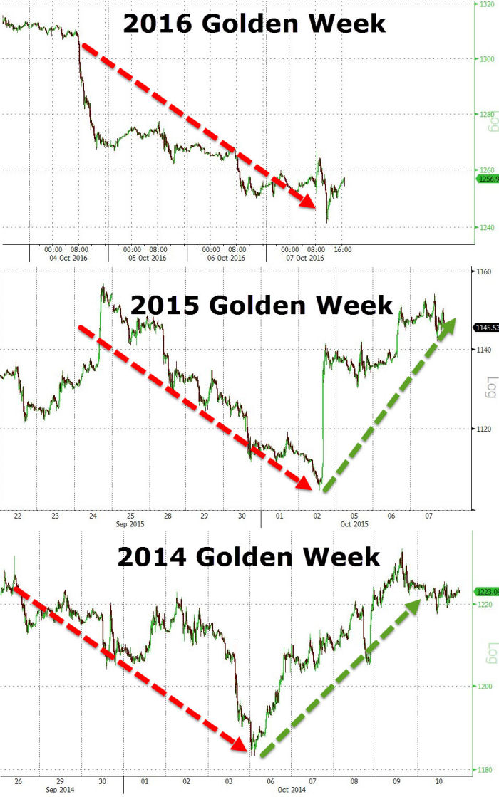 But back to the gold sell off and why it may not be as bad it as it appears. Sure there is talk about another $200 sell off before the end of the year but going by the charts below that were posted on Market Slant just today, Sunday, October 9, 2016, you can see that this same scenario has been played out in the past. This year was a bit more agressive of a sell off but then again maybe the rebound will be that much more aggressive too.