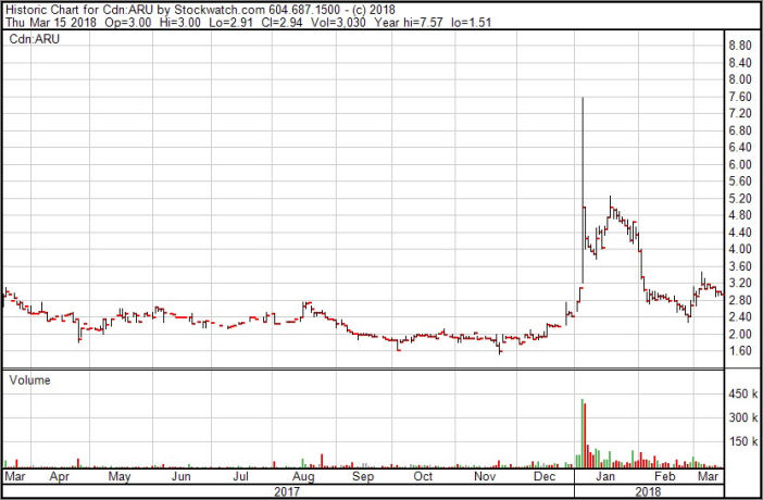 Aurania has 28 million shares with a 52 week trading range of $1.50 low and a $7.60 high.