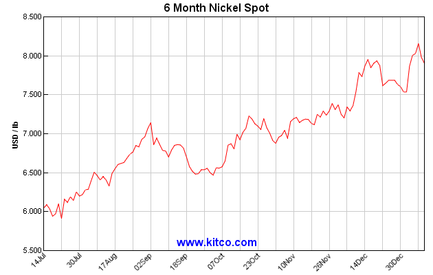Except for these last few days of a rally, silver was not doing much better. Platinum and palladium also taking a hit. Platinum and palladium also taking a hit. Even copper and nickel rolled over this past week. Nickel's actually been on a real tear the last few months as seen in the chart below and stocks like Sherrit TSX-S let you know by hitting 52 week highs.