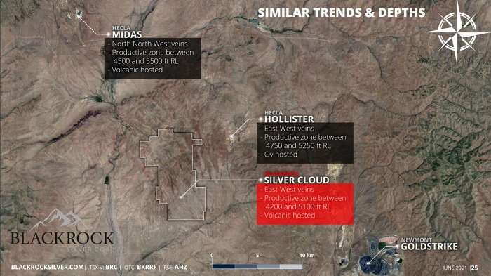 One of these juniors is a company called Blackrock Silver TSX-V:BRC. The company just did a name change from from Blackrock Gold in mid March of 2021 to better reflect the silver dominant nature of it's flagship Tonopah West silver-gold project located in the Walker Lane trend. This trend, located in the Tonopah West district is one of the largest historic silver districts in North America, producing 174m ozs Ag, 1.8m ozs Au. Blackrock also has an area known as